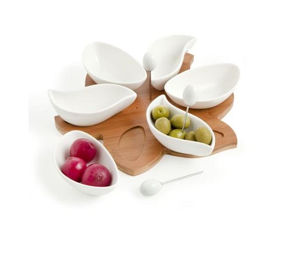 Maggiori dettagliSapore, diletto e linee. Brandani unisce le tre parole in un’unica antipastiera, ideata per offrire agli ospiti diverse alternative di gusto. Si compone di 6 ciotoline in porcellana, con linee morbide e delicate, pronte ad accogliere in tavola diversi tipi di spuntini e salatini. E’ un’idea nuova e pratica per iniziare un party d’effetto con i tuoi commensali. Misura: cm 28x27x10 h