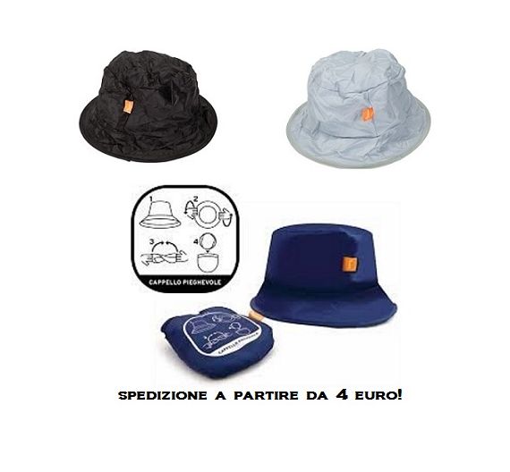 The folding rainproof hat is made in one size. With a simple move (just make an eight-shape with the brim hat) the hat folds up on itself and can be stored in its handy pocket.