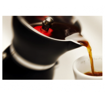 Espresso coffee maker in aluminum casting. Handle and knob in PA, red or black
