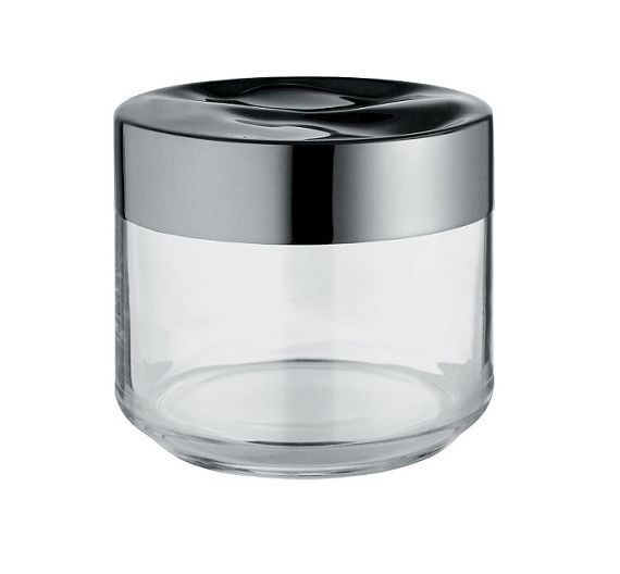 LC08 Kitchen box in glass with hermetic lid in 18/10 stainless steel mirror polished.