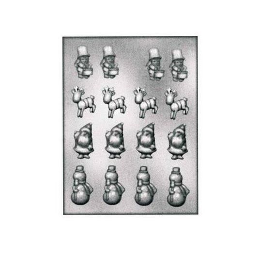 Multiforme in plastica per creare con facilità Babbo Natale, Tamburino, Renna, Pupazzo di Neve in cioccolata. Dimensione: 48 x 29 h 8 mm codice: 904109