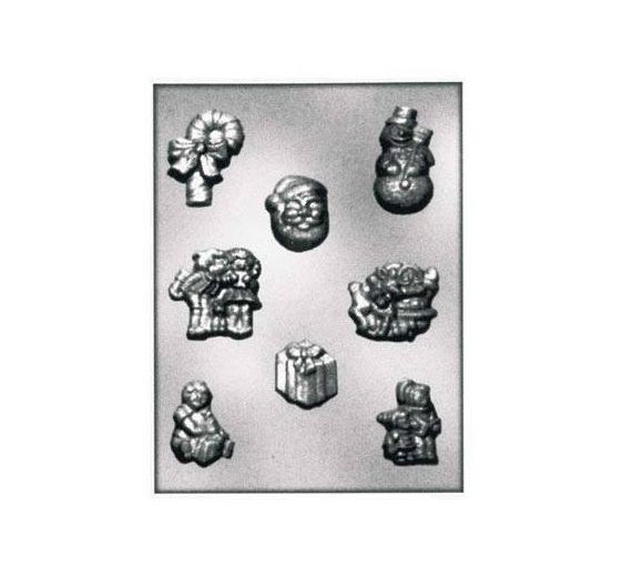 Multiforme in plastica per creare con facilità Babbo Natale, Regali, Bambini,fiocco in cioccolata. Dimensione: 48 x 29 h 8 mm codice: 904102