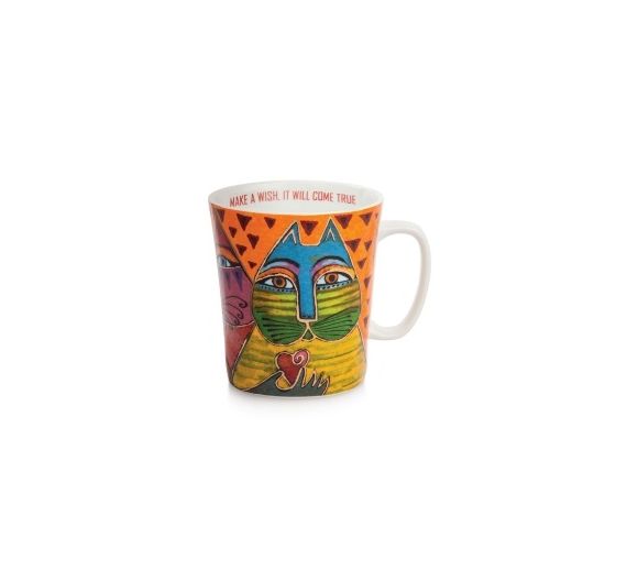 The EGAN porcelain mugs by Laurel Burch have the particularity of the shape and representation of cats in various bright colors.
