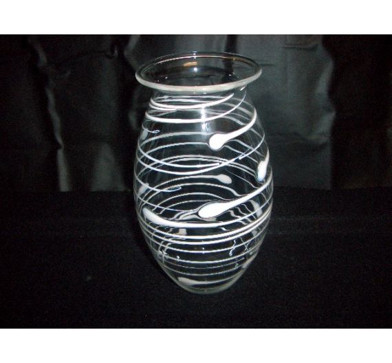 - Classic vase of reduced dimensions (d. 8,5 x h.16 cm) ideal for carrying short stem flowers or to embellish your shop windows. It is made of borosilicate glass with melted white glass inside with spiral decoration. Used as a favor, it comes complete with box. Handmade in Italy: over 20 pieces, offer prices are made (contact us).