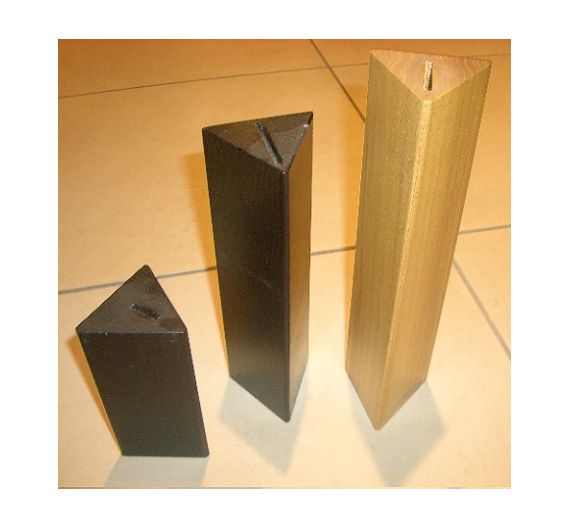 Practical wenge wood block to hold a knife; it can be attached to other models of the same type, thanks to the two magnetized sides that allow it to be firmly gripped on the side of the other element. It has a triangular base (each side measures 7 cm) and is 26 cm high.
