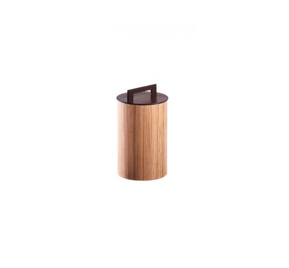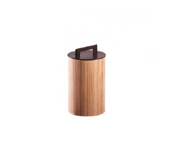 Round basket in brown zebrano wood with leather cover, diameter 21.5 cm height 37cm,