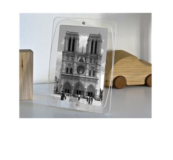 Transparent plexi photo frame of minimal design: just insert the photographs and the 2 magnets on the sides of the photo frame will hook them firmly. Dimensions: 19x12.8 cm for 10x15 cm photos