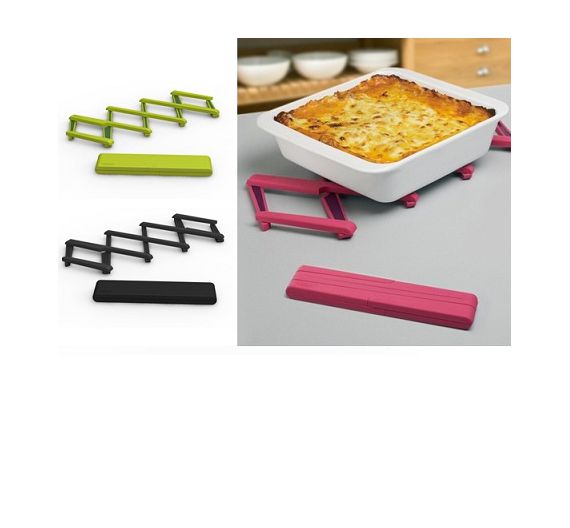 Il sottopentola estensibile è pensato per poter adattarsi a più pentole o ad una grande casseruola: dopo l'uso si richiude così da occupare poco spazio. E' realizzato da un materiale composito di nylon e silicone resistente a 270 °C.