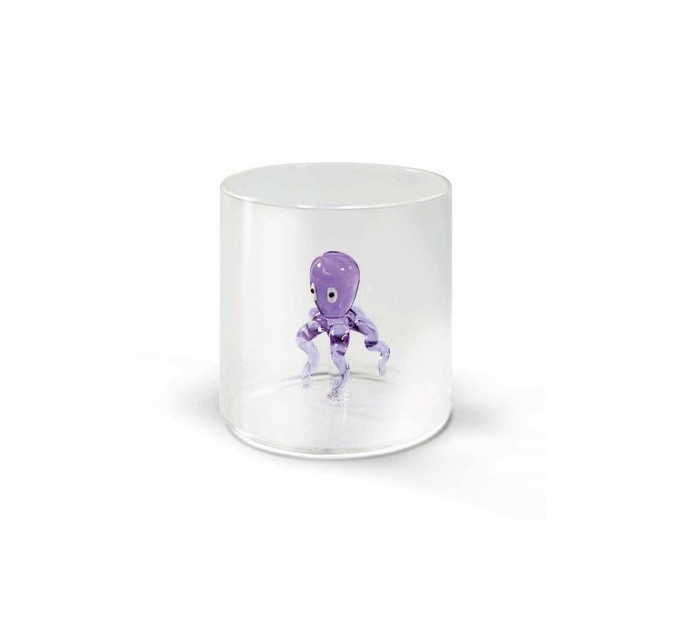Pitcher in borosilicate glass internally decorated with a in colored glass Octopus. Each figure is handcrafted in blown glass making every single pitcher a unique piece. Capacity: 1.5l