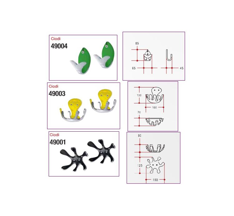 Maggiori dettagliNice hangers in white, green, yellow, red and black enamelled aluminum in the shape of a fish, octopus, spot. When ordering ask for color and shape availability. The price refers to a single piece.