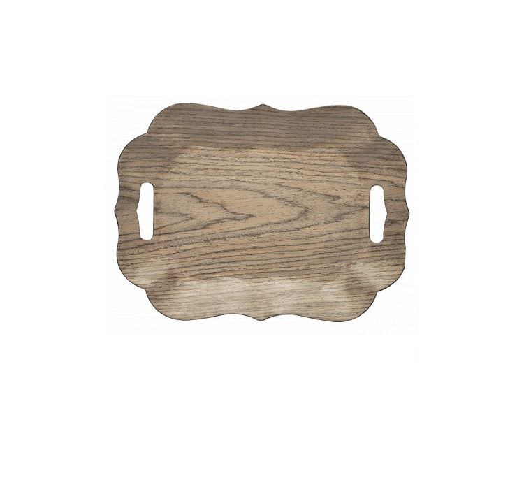 Maggiori dettagliTray with shaped edge and handles, in plastic with light oak effect decalco application. Not suitable for dishwasher.