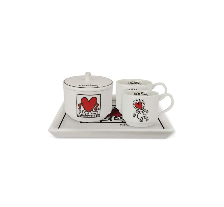 Maggiori dettagliPorcelain set with Keith Haring's drawings: men and red hearts.