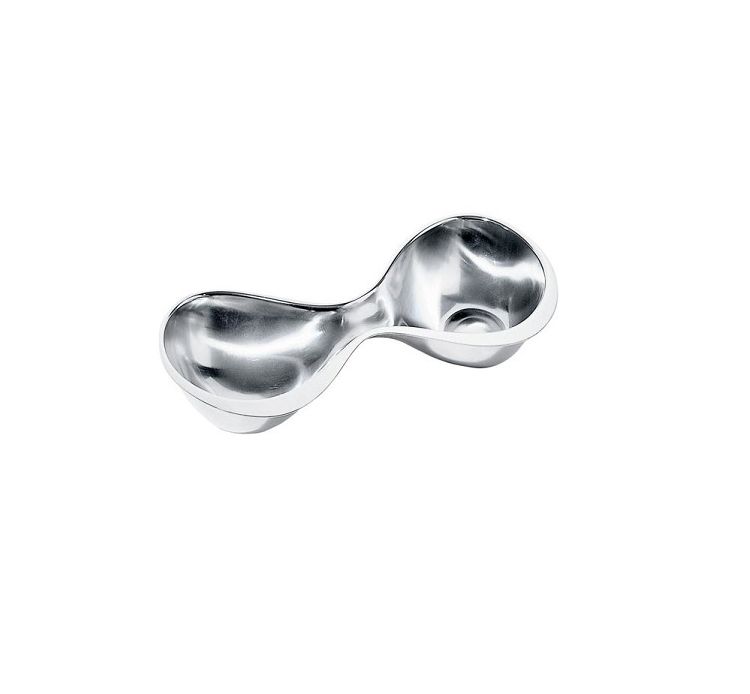 Tags: alessi, acciaio, satinato, antipastiera, 2 scomparti, ra02, salsa, babyboop, nibbles,Babyboop is the first design Ron has made for us in steel. It's a set of three small containers for nibbles, shaped to reflect the large blow-molded aluminium furniture/sculptures he made in a limited run in the late nineties.
