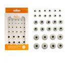Maggiori dettagliConfezione di 30 occhietti realizzati con i seguenti ingredienti: zucchero velo, acqua, albume uovo, coloranti e acido citrico. Nella confezione ci sono 12 occhietti diametro circa 7 mm, 10 pz circa 13 mm, 8 pz circa 28 mm.