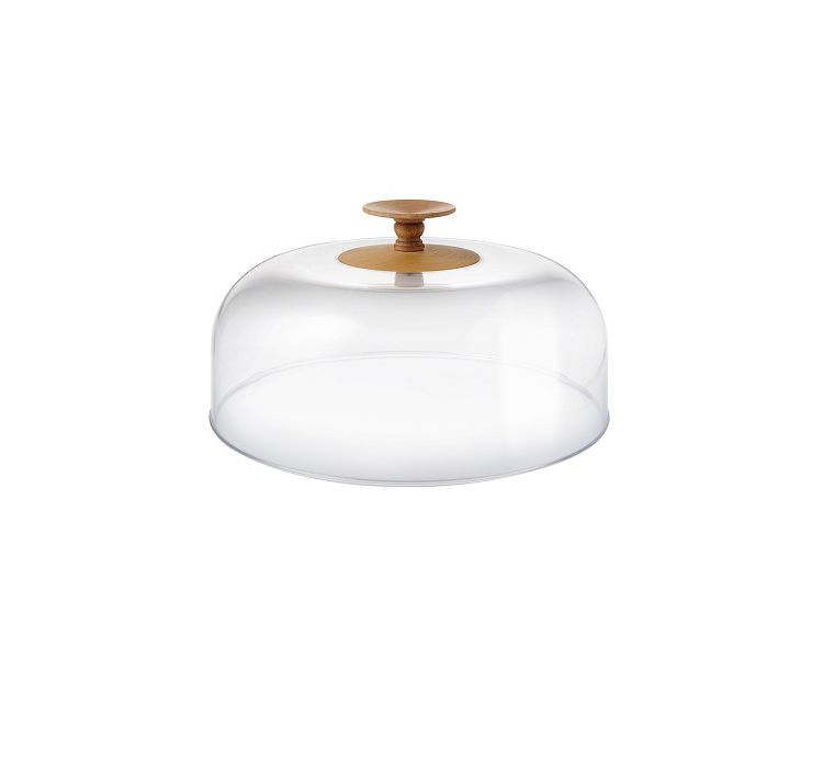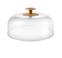 The doomed cover with wooden knob is part of the project “Dressed in wood”, designed by Marcel Wanders. It can be used with either the cheese board or the cake stand “Dressed in wood”. A natural material, beech wood, shaped by artisans, is characterised by knots and veins that make each piece slightly unique. “Dressed in wood” is a collection made by artisans in Valle Strona, where the production of wooden artefacts is documented as far back as the sixteenth century. This Valley drops down to Lake Orta, where Alessi is headquartered.