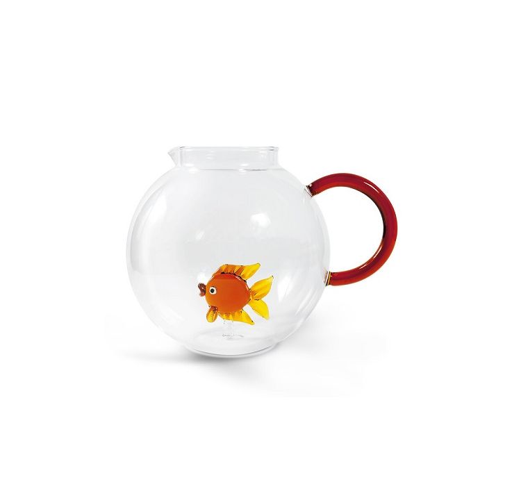 Maggiori dettagliBorosilicate glass jug with colored glass decoration inside with the shape of a goldfish. Each subject is handcrafted in blown glass making every single jug a unique piece. Capacity: 1.7 L.