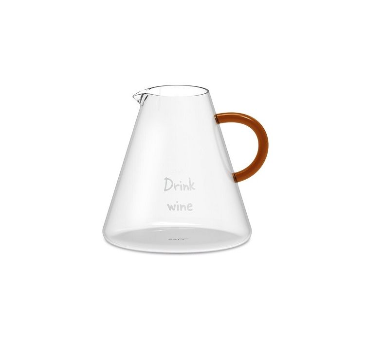 Maggiori dettagliDecanter pitcher in borosilicate glass with brown handle and decorative writing. Its modern shape makes this wine decanter unique and original. Capacity: 1.6 L.