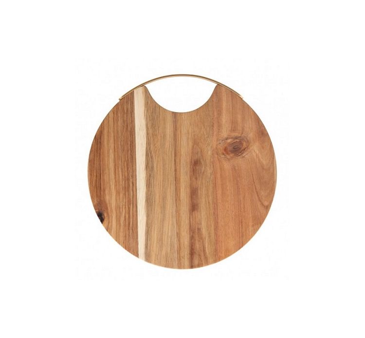 Brandani round acacia cutting board with gold handle