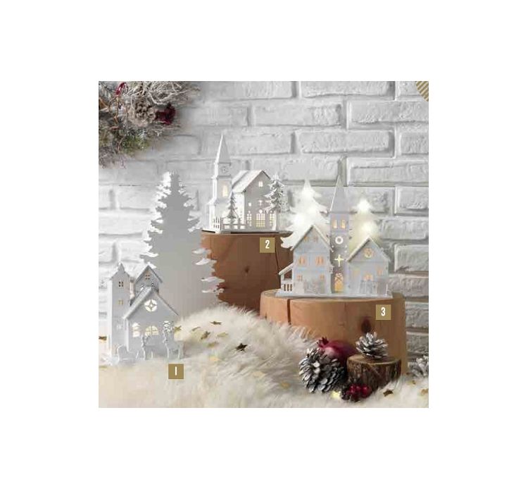 Maggiori dettagliChristmas collection year 2015 of L’oca Nera: This small house of size 19,5x15xh.20,5 cm leans on a floor and is equipped with hidden lights that are battery powered (not included) placed on the base.