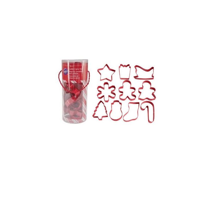 Maggiori dettagliSet realizzato da 10 tagliabiscotti verniciati rossi cm 7 x h 1,5 cm che permettono di realizzare 10 formine di carattere natalizio.