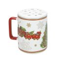 This mug is freezer, oven, and microwave safe. It's part of Brandani's 'Racconti' collection, which adds a touch of joy to your festive tablescapes, making them elegant and harmonious. All items are adorned with trees, fir trees, and the ever-present Santa Claus, in delightful shades of green, white, and red.