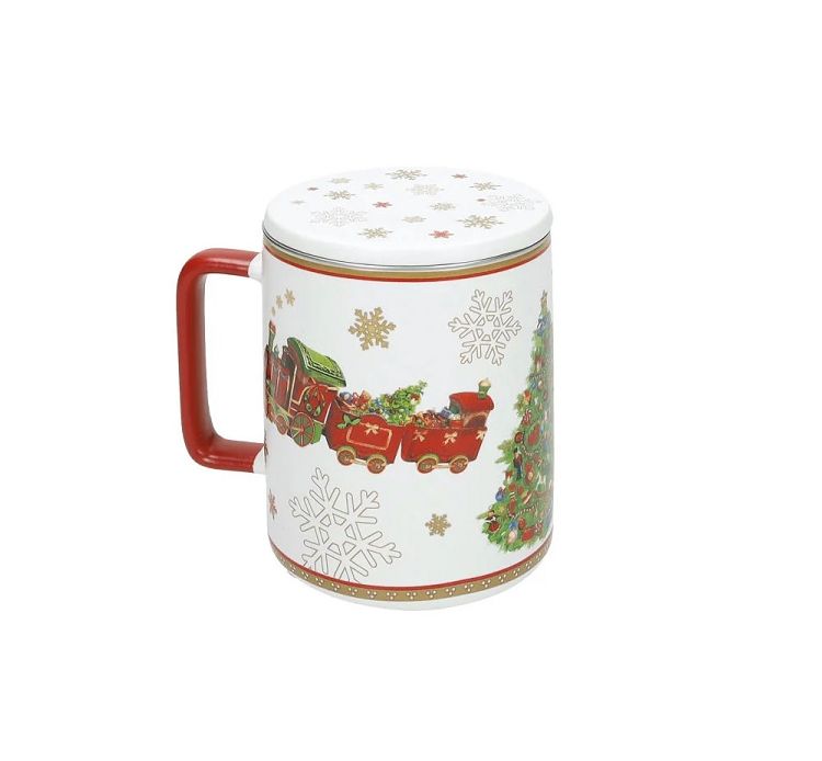 Brandani's Christmas Gold mug is crafted from elegant dolomite and comes in a fantastic Christmas gift box, making it the perfect gift. The lid keeps your drinks warmer and longer, and also features a convenient holder for the included spoon.