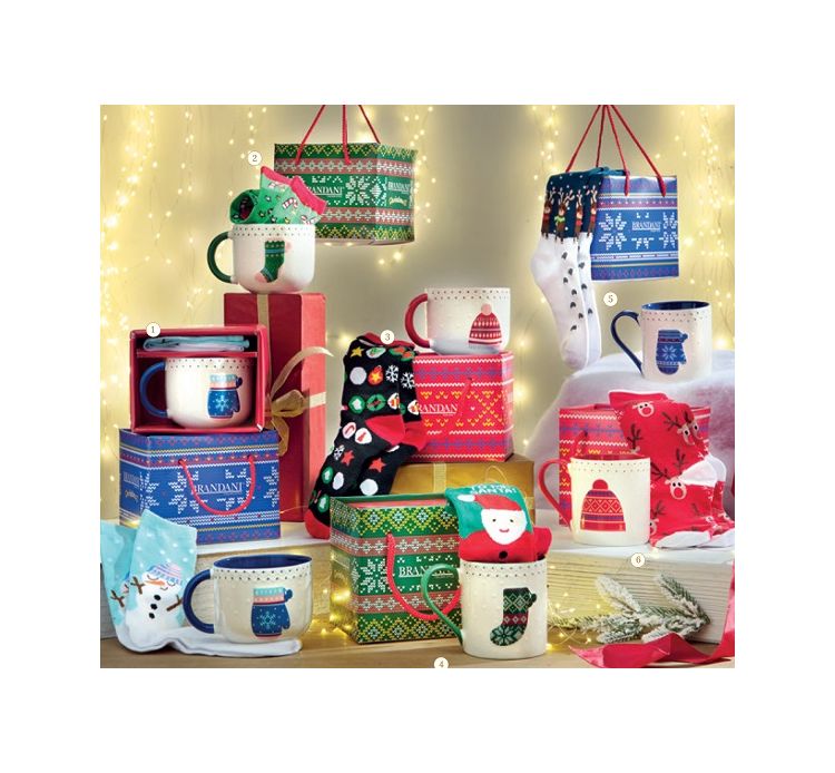 Maggiori dettagliThe Brandani Mug is the ideal Christmas gift: opening the package reveals a refined porcelain mug and a pair of warm and fun stretchy Christmas socks.