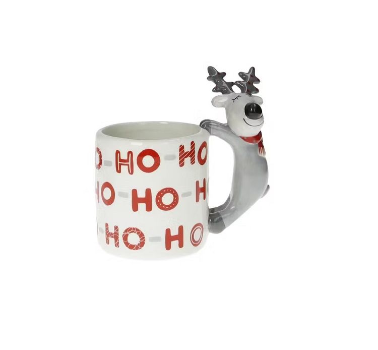 Alternatively, you can choose the mug with a different handle shape, featuring a cute gray reindeer.