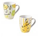 Mug in new bone china porcelain, Flora collection, 1 white background and 1 green background