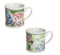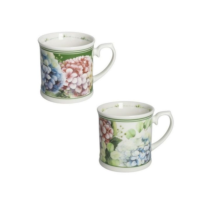 Mug in new bone china porcelain, Flora collection, 1 white background and 1 green background