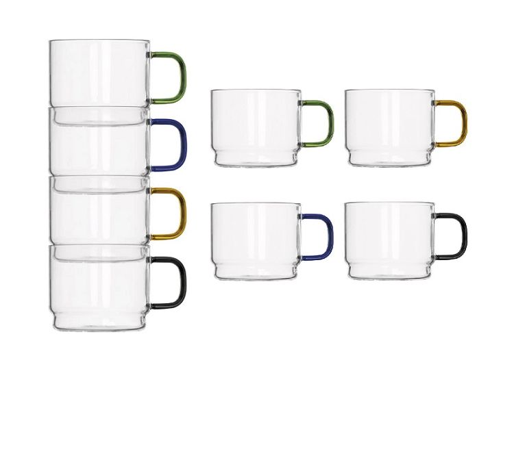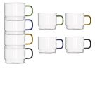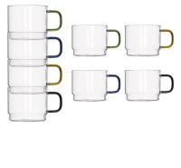 Maggiori dettagliThe set of 4 glass cups with colored handles from the Brandani line, Bridge model, represents an elegant and functional addition to your tableware collection. These cups are designed with extreme care to ensure both style and practicality: the stackable design of these cups makes storage a breeze, saving precious space in kitchen cupboards.
