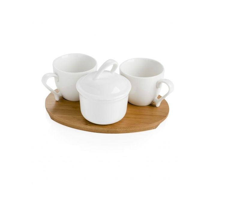 Brandani set 3 pieces coffee and sugar bowl with bamboo base