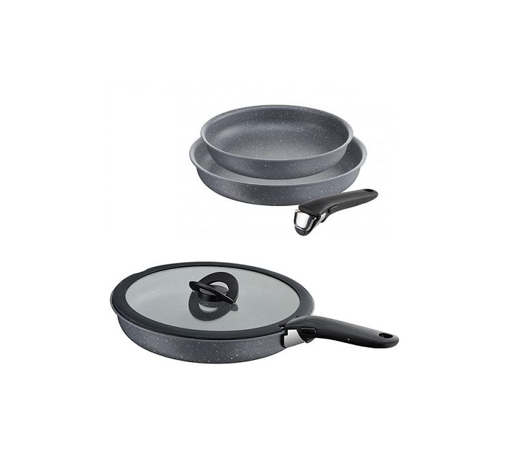 Ingenio is the new non-stick marble effect line by Lagostina. Distinctive feature of the line is the removable handle, compatible with all pot bodies, equipped with 3 patents and resistant up to 10Kg. Ingenio is suitable for preparations from the hob, to the oven, to the fridge, it is ideal for serving food directly on the table and moreover it is space-saving because it is perfectly stackable. Ingenio: multipurpose, monomanic, space-saving! The lid and the handle are not included in the delivery and are available for sale separately.