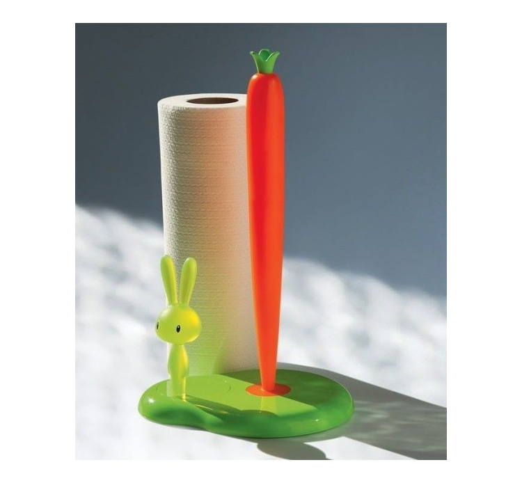 Tags: alessi, portarotolo, bunny, carrot, carota, asg42, rabbit, roll holder,The rabbit character, an example of the figurative and zoomorphic inspiration behind Stefano Giovannoni's design, is here applied to another kitchen object that is normally neglected by "high" design.