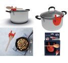 Nice silicone utensil for the kitchen: Steaman lifts the lid of the pans to prevent the boiling from wetting the hob. It is also a handy spoon holder.