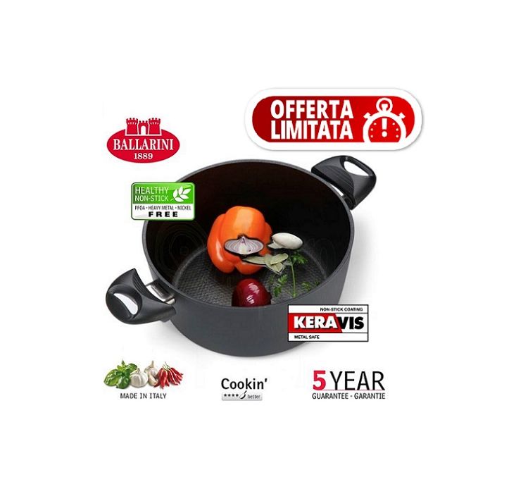 5-year Ballarini warranty. Free from PFOA, Heavy Metals, Nickel free. Characterized by: