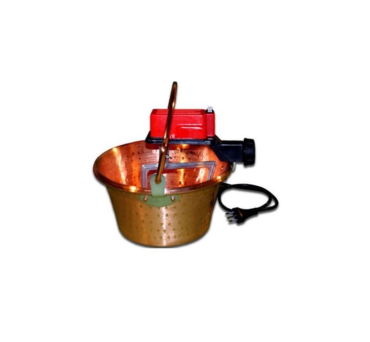 Maggiori dettagliHammered copper pot, with flat bottom, diameter 26 cm, capacity 4 liters, 5W-220V-50Hz motor (double insulation and 2 rpm speed). Ideal for polenta and jams. Easy to use, just place the pan on the hob, connect the appliance to the electricity and insert the ingredients. The aluminum shovel comes off easily for easy cleaning. Made in Italy