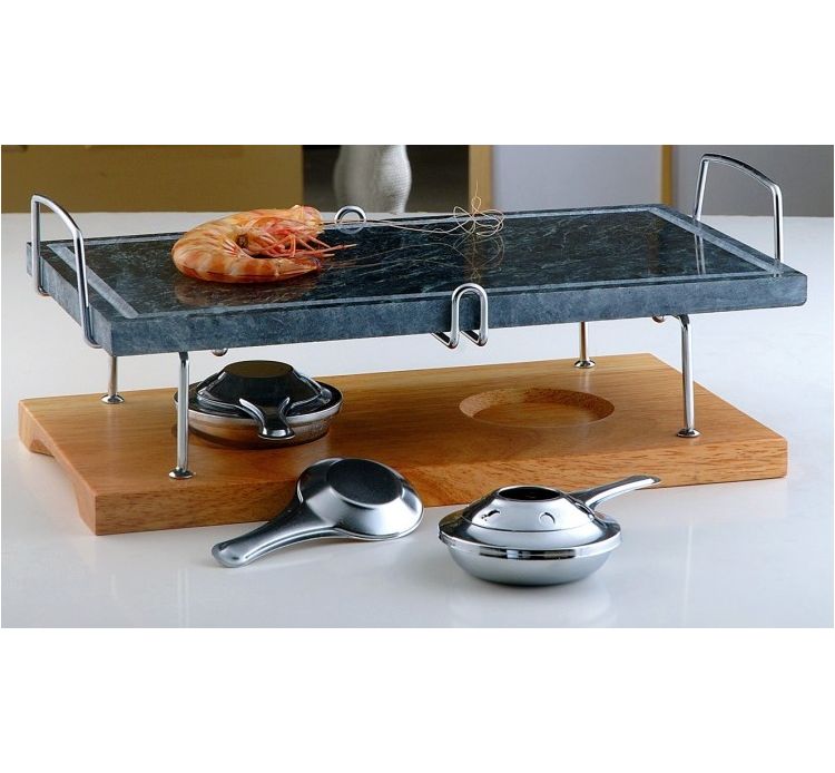 Tags: legno, piastra, pietra ollare, senza grassi, light, soapstone, light food,Dimensions: CM 41X23X16H art. 58654 - before each use, heat the stone for a few minutes in the oven at 200 degrees. - suitable for light cooking without adding oil - equipped with stoves suitable for fuel paste, to keep the stone hot as long as possible.