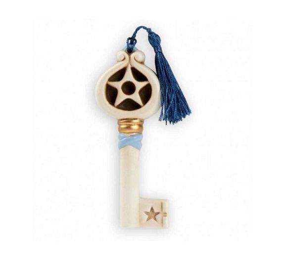Maggiori dettagliA key to open a heart, a home, a life ... the mind ... the future ... the infinity that is within us. Material: ceramic hand-cast on gypsum molds, cooked and decorated by hand.