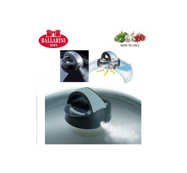 Maggiori dettagliLid with vent: Innovative system that eliminates the danger of condensation inside the lid, improving cooking. Thanks to a simple movement of a lever, the vent duct opens. Thanks to the dome shape, it allows you to cook roasts and poultry on pans without the food lifting the lid.