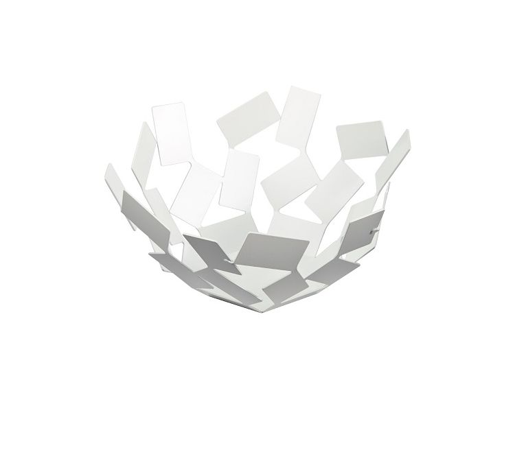 Tags: alessi, fruttiera, bianco, stanza, scirocco, porta frutta, mt02w, white, fruit, basket, holder,“La Stanza dello Scirocco” is a range of items suitable for different rooms, such as the kitchen and the living room born out of the abstract and motionless atmosphere of a magic place: the room in large Sicilian country homes where one is forced to seek shelter from the sultriness while waiting for the scirocco to die down. It is a room without windows in which you can do nothing but ponder the wind that is undoing all sublunary things outside. The upshot is a collection of geometrically irregular items made up of small splinters of various sizes, interlaced in an unstable balance