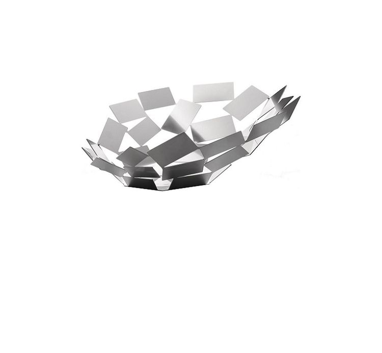 Tags: alessi, acciaio, portafrutta, stanza, scirocco, centro tavola, mt03, fruit, basket, stainless, centrepiece,- “La Stanza dello Scirocco” is a range of items suitable for different rooms, such as the kitchen and the living room born out of the abstract and motionless atmosphere of a magic place: the room in large Sicilian country homes where one is forced to seek shelter from the sultriness while waiting for the scirocco to die down. It is a room without windows in which you can do nothing but ponder the wind that is undoing all sublunary things outside. The upshot is a collection of geometrically irregular items made up of small splinters of various sizes, interlaced in an unstable balance.