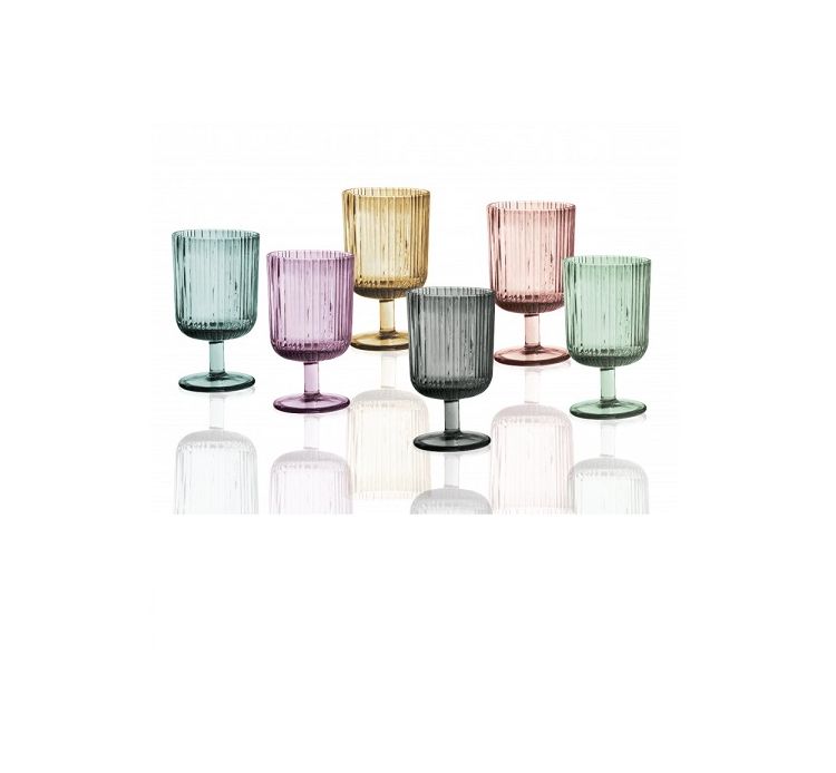 Maggiori dettagliThe pleated collection is made up of goblets, glasses and carafes with sturdy colored glass capable of spreading joy and light-heartedness. The lines on the surface make the shine of their shades peculiar, reflecting every nuance in a play of light and elegance with a modern and enthusiastic soul!