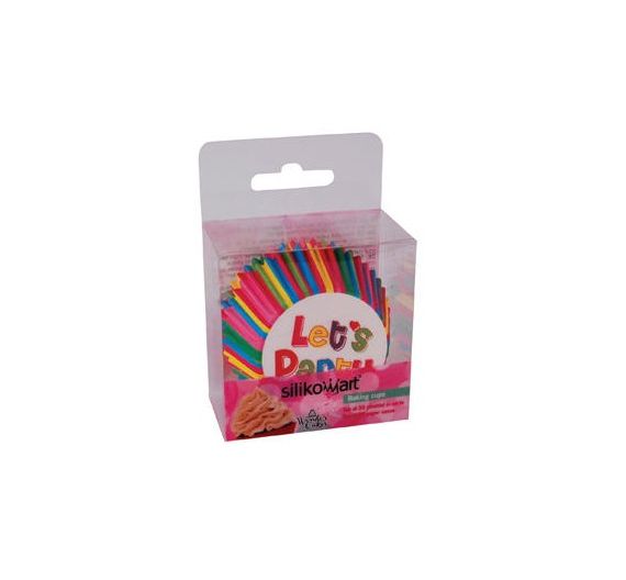 Set 50 pirottini in carta decorati dal diametro di 5 cm ideali per cuocere in forno e servire cupcakes, muffin e dolcetti. Decoro righe colorate