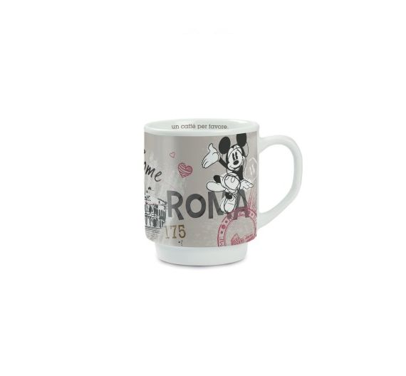 Mug in porcellana che seguono la precedente serie Disney di Mickey Mouse ora ambientata nelle città europee di Roma, Parigi, Londra. Capacità: 300 ml.