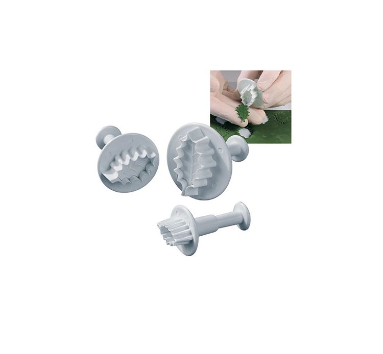 Maggiori dettagliSet 3 pezzi stampo stantuffo rfoglia di agrifoglio ideale per realizzare formine su pasta di zucchero: