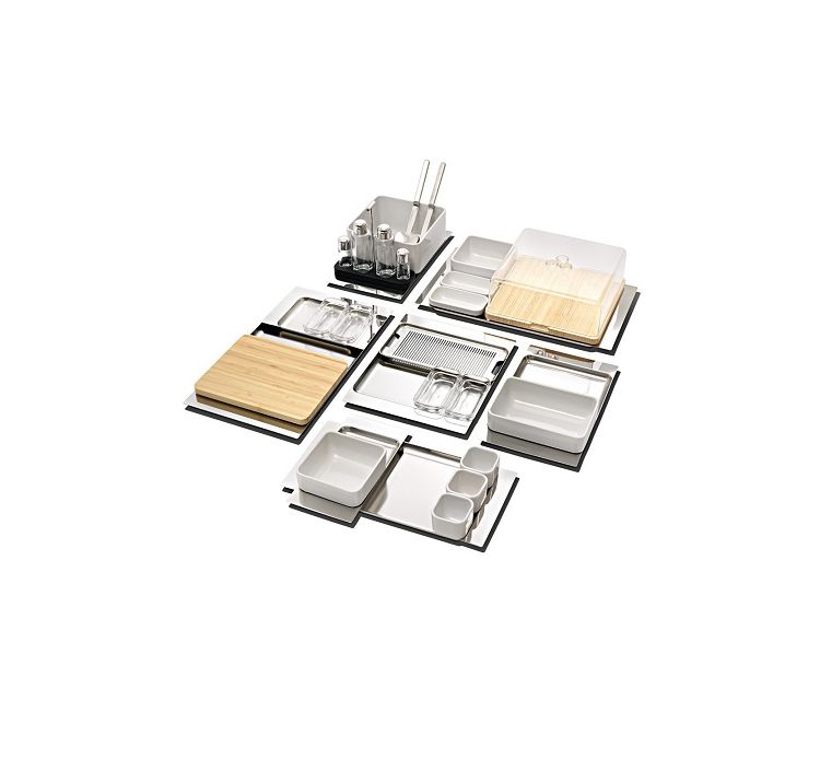 “Programma 8”, un progetto organico e completo di piccoli oggetti casalinghi componibili e modulari basato sullo stesso assunto metodologico dell’architettura dell’international style di quel periodo: la teoria della metaprogettazione a sistema aperto, adatta alla libera composizione di infinite tipologie. Il progetto, definito da Mendini nel 1979 “il più evoluto sistema di casalinghi realizzato in assoluto sul piano internazionale” viene oggi ripreso e completato aggiungendo alle funzioni originarie del cuocere e del servire anche quelle del conservare e dell’apparecchiare la tavola.