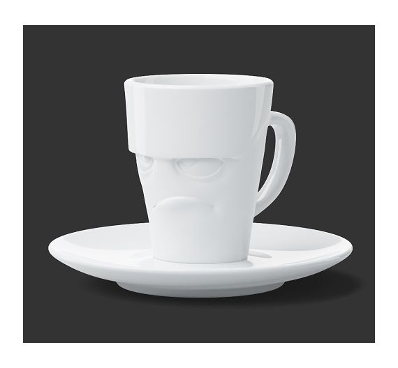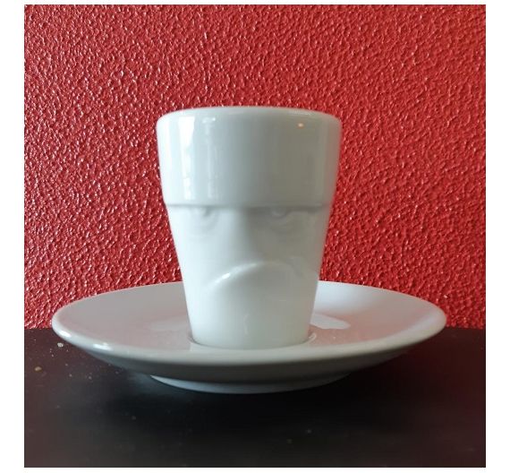 Una geniale e divertente idea creativa di 58 Products, una tazzina caffè espresso dal design moderno: è una faccia incisa sulla superficie, il viso sognante, innamorato, arrabbiato..vi sorprenderà! E' realizzata in pura porcellana di resistente qualità alberghiera; non teme lavastoviglie e potrete riscaldare il latte direttamente in microonde senza paura che la tazza si rompa. Viso da diavoletto