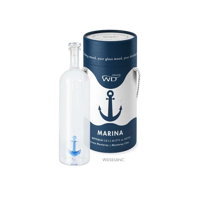 Brocca in vetro borosilicato con decoro in vetro colorato all'interno con la forma del mostro di Loch Ness. Ogni soggetto è realizzato artigianalmente in vetro soffiato rendendo ogni singola brocca un pezzo unico. Capacità: 1.7 L.