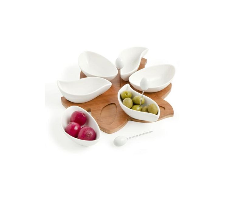 Maggiori dettagliSapore, diletto e linee. Brandani unisce le tre parole in un’unica antipastiera, ideata per offrire agli ospiti diverse alternative di gusto. Si compone di 6 ciotoline in porcellana, con linee morbide e delicate, pronte ad accogliere in tavola diversi tipi di spuntini e salatini. E’ un’idea nuova e pratica per iniziare un party d’effetto con i tuoi commensali. Misura: cm 28x27x10 h